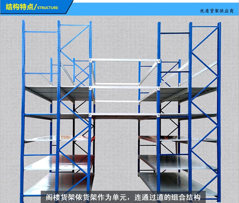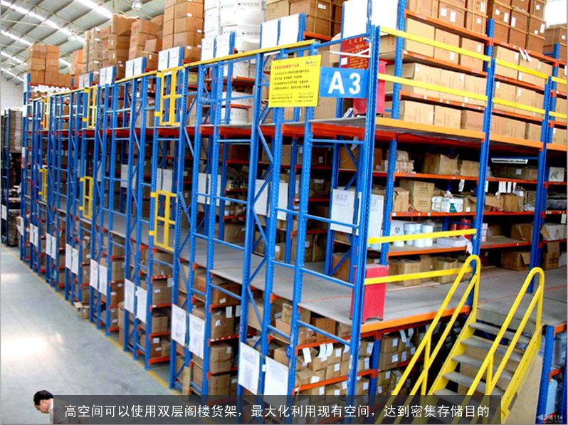 閣樓式貨架是在廠房地板面積有限的情形下,利用鋼梁和金屬板將原有儲(chǔ)區(qū)作樓層區(qū)分,每個(gè)樓層可放置不同的種類的貨架,而貨架結(jié)構(gòu)具有支撐上層樓板的作用。閣樓式貨架在倉儲(chǔ)設(shè)備中占有著十分重要的地位,閣樓式貨架的應(yīng)用實(shí)現(xiàn)了倉庫管理的現(xiàn)代化進(jìn)程,全面提升倉庫的功能。